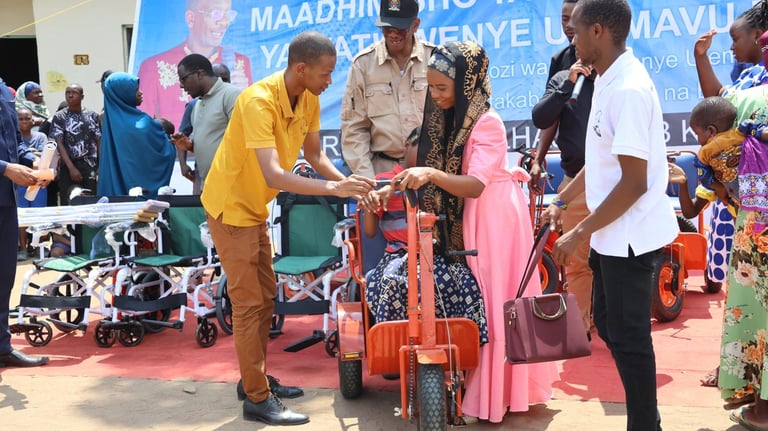 Ende 2024 konnten wir unser erstes großes Spendenprojekt umsetzten. Zusammen mit Spenden unserer Mitglieder und einer großen Spende der Confoederatio Ottiliensis konnten insgesamt 5.000€ gesammelt werden und davon 10 Tricycles und 8 Rollstühle und mehrere Krücken gekauft und der District Verwaltung übergeben werden. Diese wurden in einem feierlichen Rahmen der "Festtag für Menschen mit Behinderung und für Inklusion" übergeben werden.